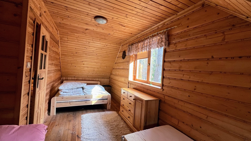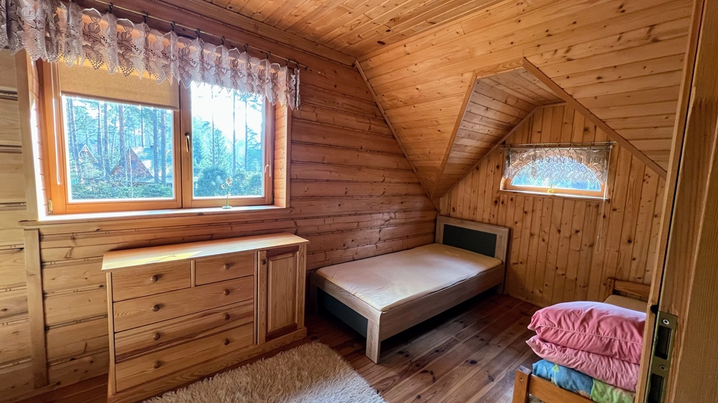 Piętro: - 3 przytulne sypialnie z widokiem na otaczającą zieleń.