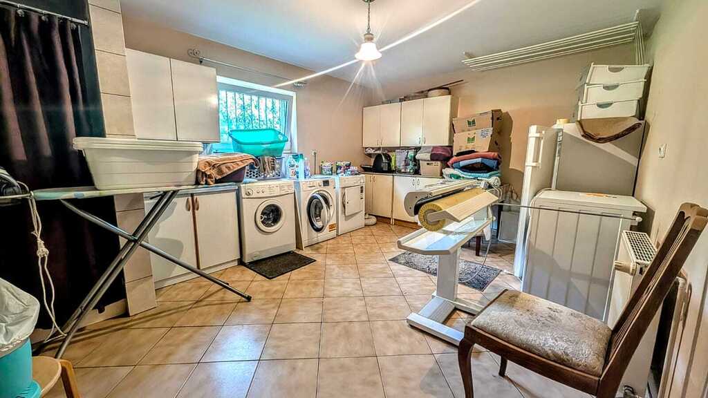 - Ilość pomieszczeń: przestronny salon, 4 sypialnie, kuchnia z jadalnią, 2 łazienki, 2 x WC, 4 pomieszczenia gospodarcze w piwnicy oraz garaż w bryle budynku