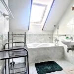 - Wyposażenie: kuchnia w pełni umeblowana, wyposażona w nowoczesny sprzęt AGD, łazienka na parterze z umywalką, prysznicem oraz wanną, łazienka na piętrze z wanną, toaletą oraz dwoma umywalkami, dodatkowo osobne dwie toalety