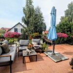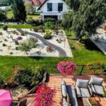 - Teren: ogrodzony, ogród z różnymi nasadzeniami oraz miejscem do relaksu