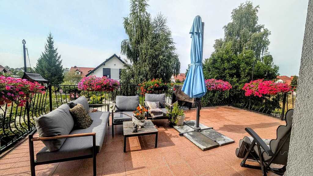 - Funkcjonalny rozkład: duży, jasny salon z wyjściem na taras, przestronne sypialnie oraz wygodna kuchnia