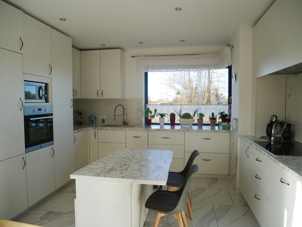 - kuchnia otwarta, w pełni wyposażona (kuchnię doświetla narożne okno, a jej atutem jest wielofunkcyjna wyspa )