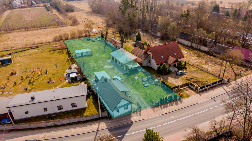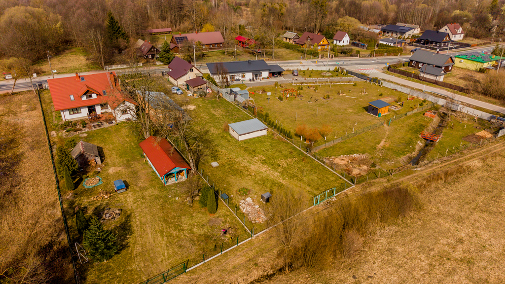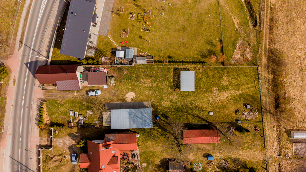 Teren ogrodzony i monitorowany. Działka o powierzchni 2002 m² daje szerokie możliwości zagospodarowania, a dwa niezależne dojazdy (asfaltowy i gruntowy) zwiększają funkcjonalność – również pod działalność.