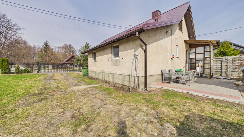 Dom w dobrym stanie technicznym, po rozbudowie i remoncie w 1992 r., z dachem wymienionym w 2025 r. Ogrzewanie: piec gazowy + piec na opał stały, dodatkowo kuchnia kaflowa. W budynku klimatyzacja.