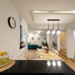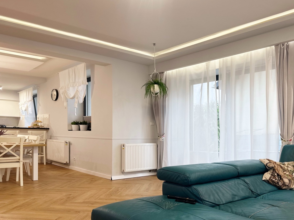 - Salon z jadalnią, otwartą kuchnią oraz wyjściem na taras