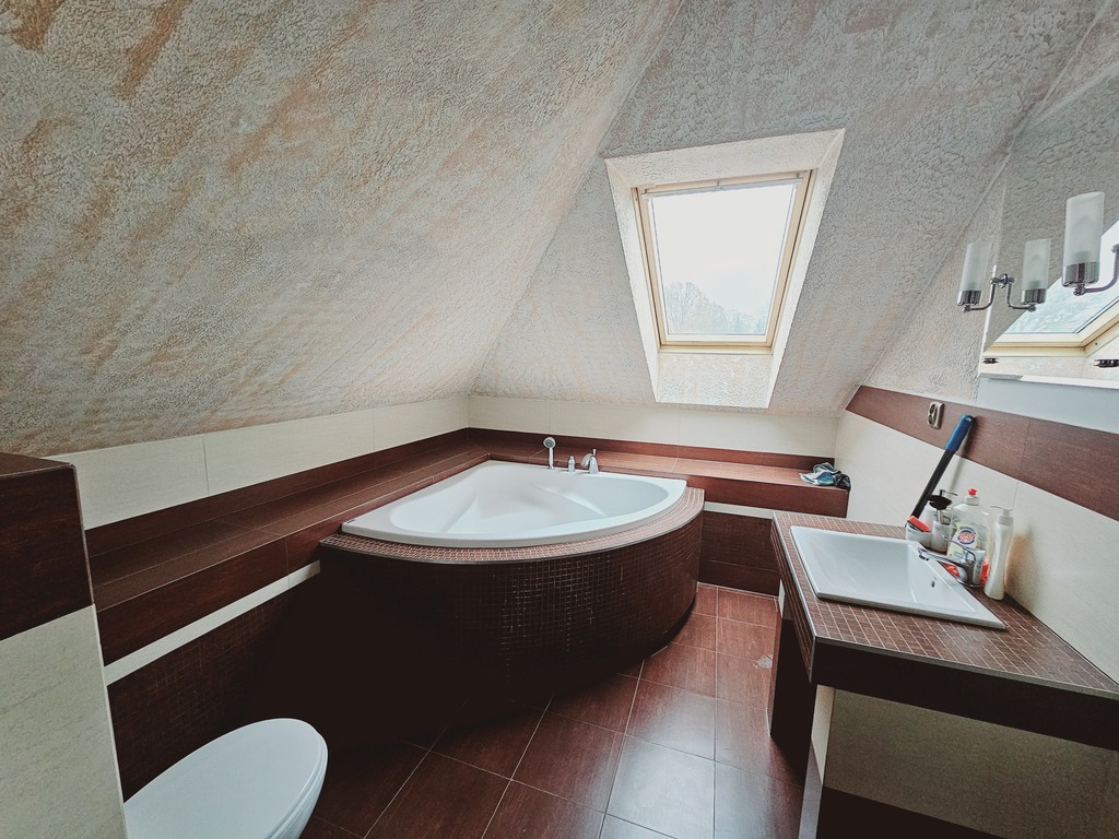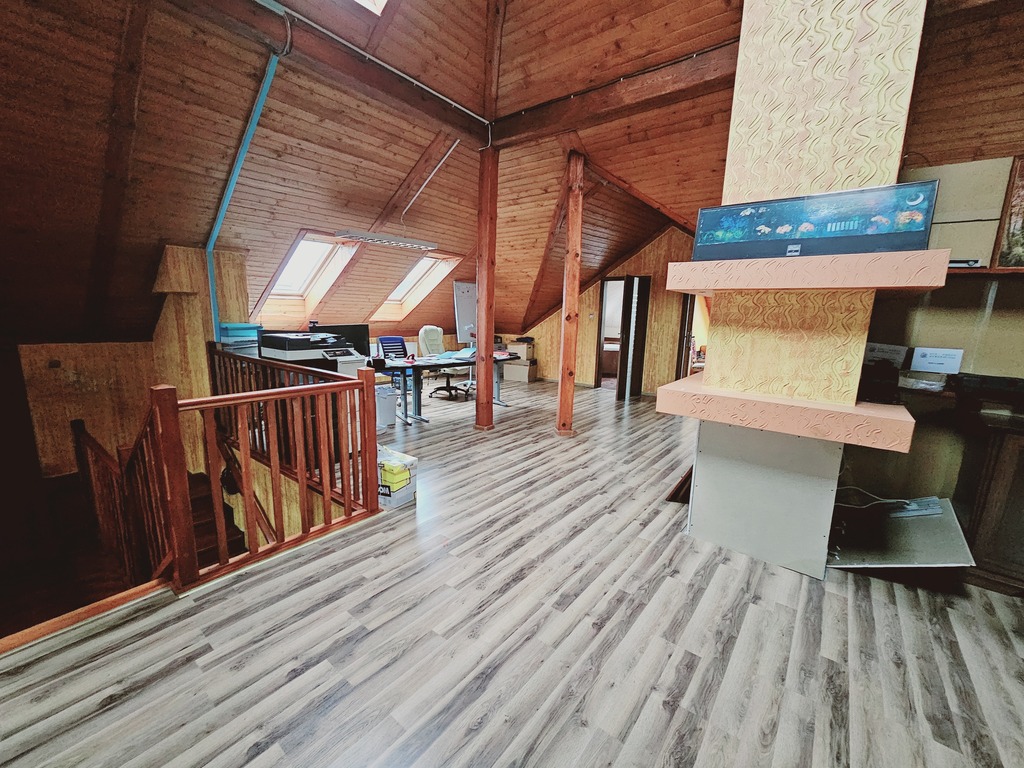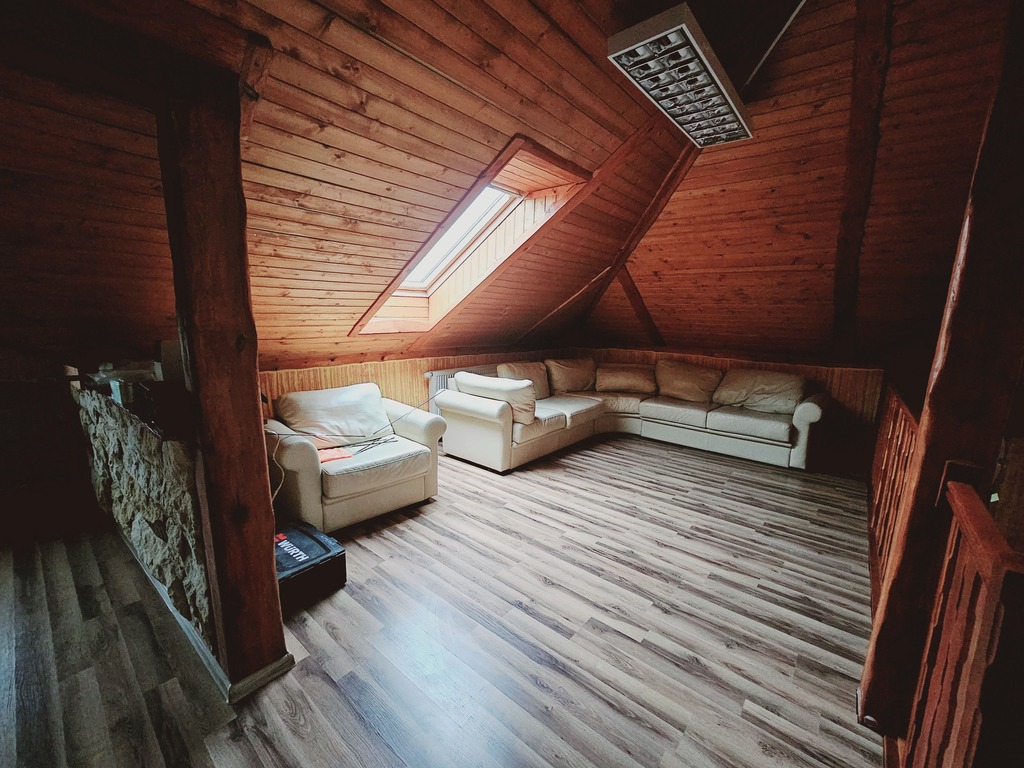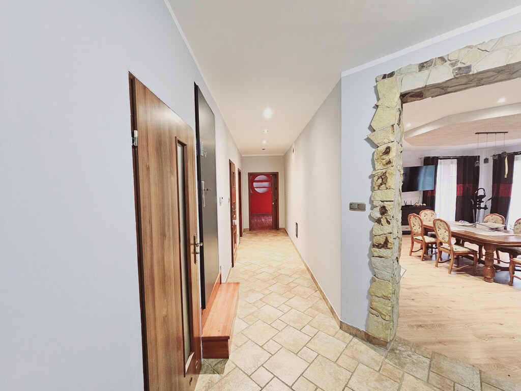 - Obszerny salon z kominkiem, jadalnią i wyjściem na taras