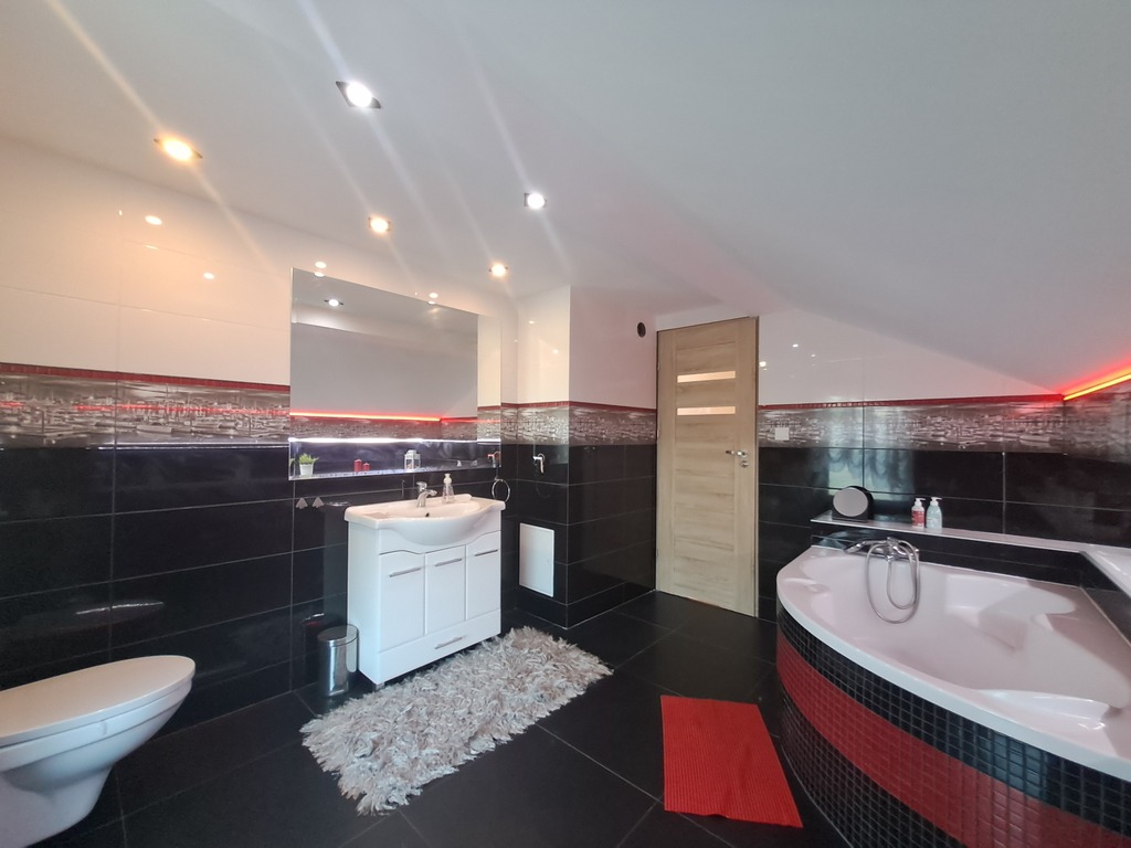 Na całym parterze ogrzewanie podłogowe, na dachu blachodachówka.