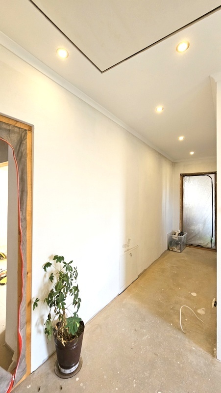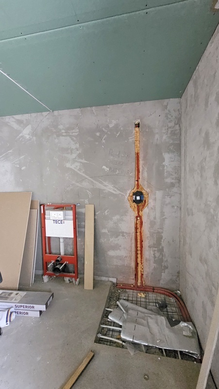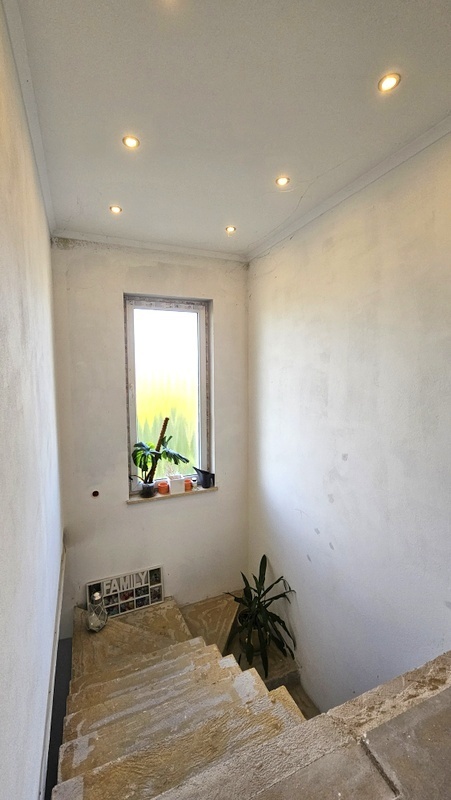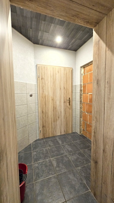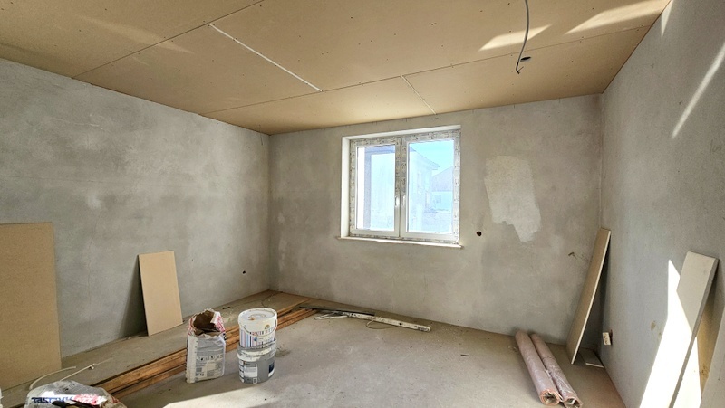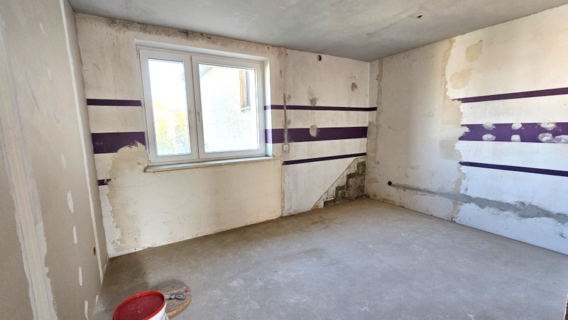 Piętro (ok. 100 m²) – w stanie deweloperskim, z wykonanymi wszystkimi instalacjami (elektryka, ogrzewanie, tynki). Pozostaje do własnej aranżacji.