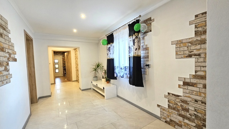 Parter (ok. 100 m²) – w pełni wyremontowany, gotowy do zamieszkania. Znajduje się tu nowoczesna, umeblowana część mieszkalna.