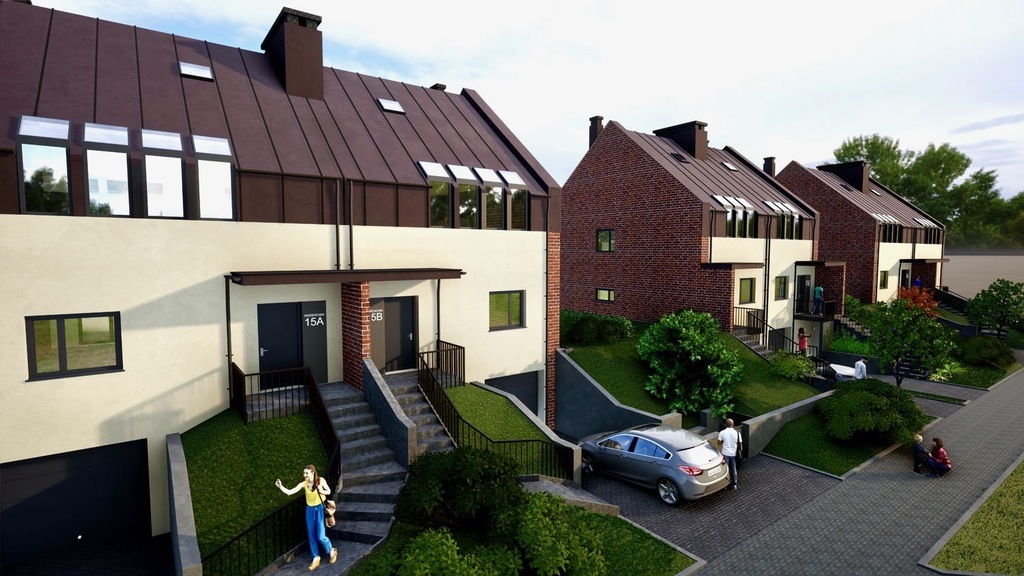 Inwestycja składa się z 3 domów w zabudowie bliźniaczej, z garażami w bryle budynków i z działkami od 284m2 do 721m2 co podnosi kameralność inwestycji oraz zapewnia ciszę i komfort dla swoich mieszkańców .