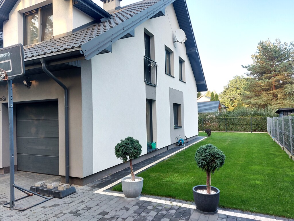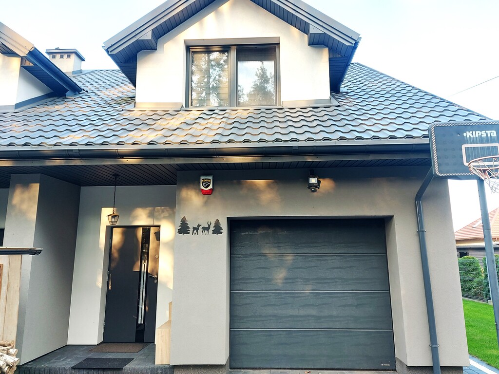 Dom jest wyposażony w wiele nowoczesnych rozwiązań i udogodnień. Automatyczna brama wjazdowa i garażowa oraz domofon zapewniają wygodę i bezpieczeństwo.