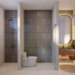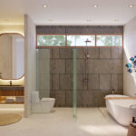 Sypialnie: Trzy przestronne sypialnie, każda z własną luksusową łazienką. Dwie z nich mają bezpośrednie wyjście na taras i basen, co zapewnia wyjątkowy komfort i niezapomniane widoki.