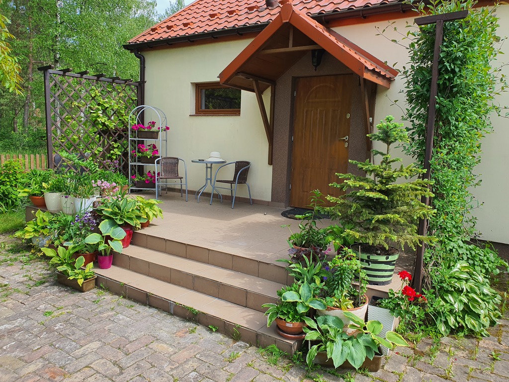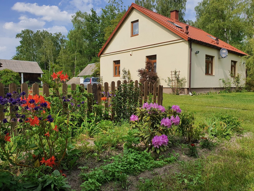 Na podwórku nasadzone są krzewy, drzewka i kwiaty. Znajduje się też ogródek warzywny. Ciche i urokliwe miejsce. Za płotem bardzo często dzika zwierzyna.