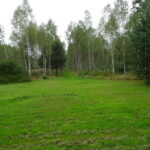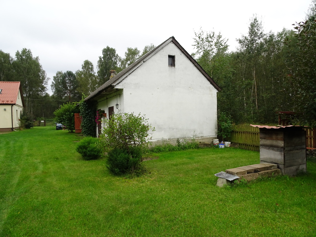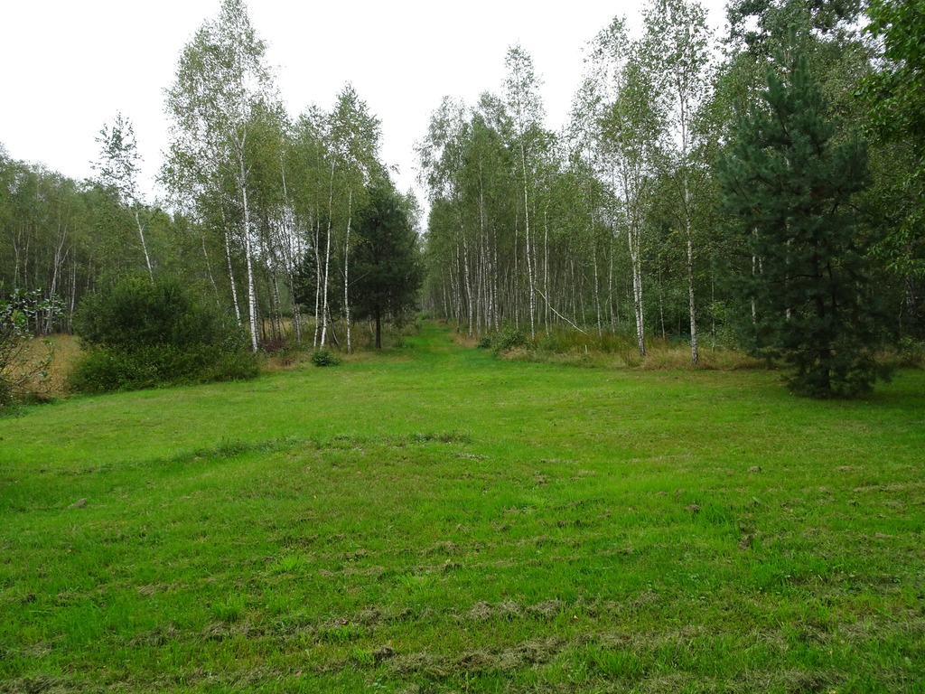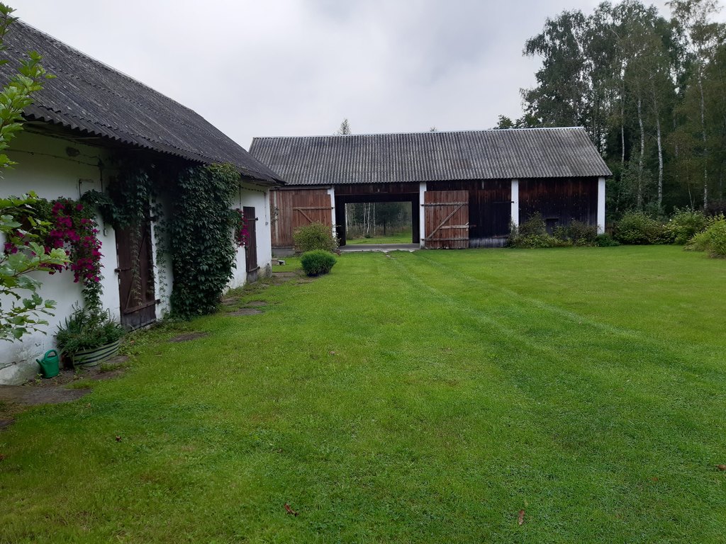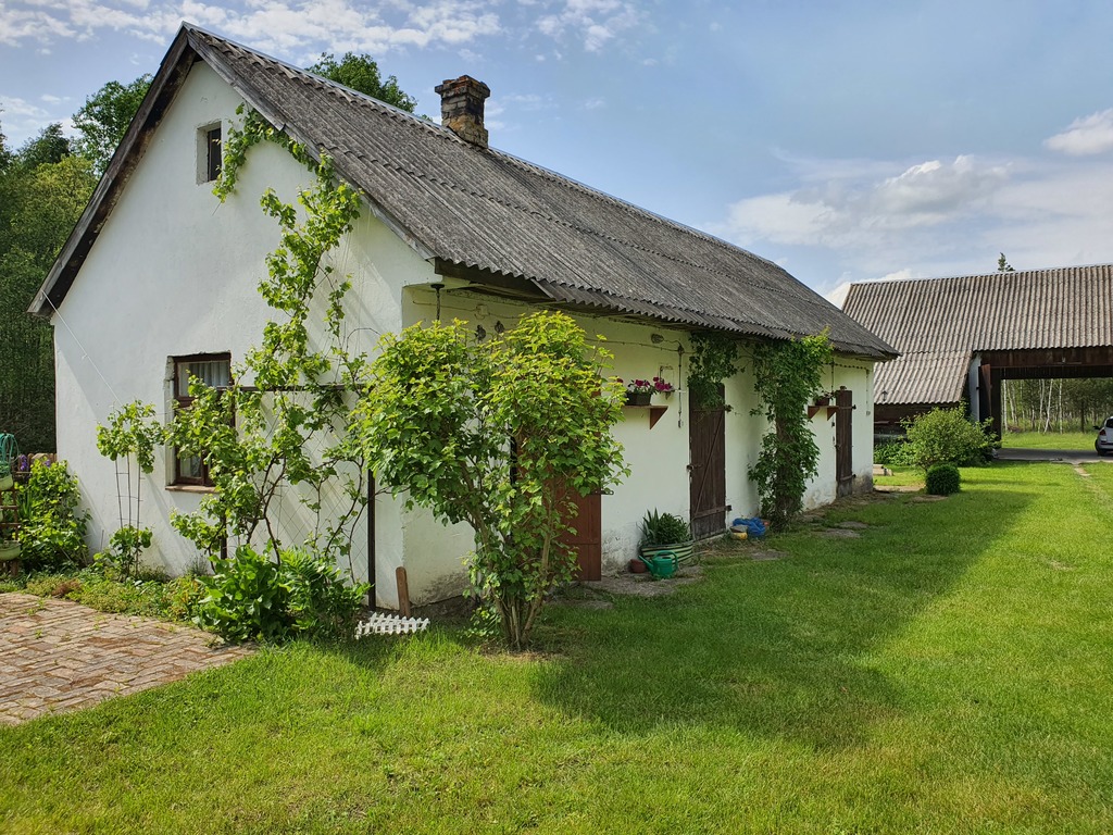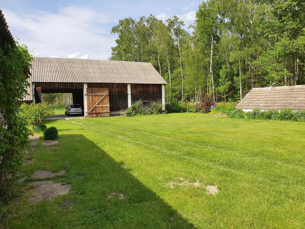 Za stodołą niewielka polana a dalej do końca działki las brzozowy z wyciętą przez środek aleją. Działka jest długa, pełna zieleni, o powierzchni 0,9843 ha w tym ok. 0,30 ha podwórko.