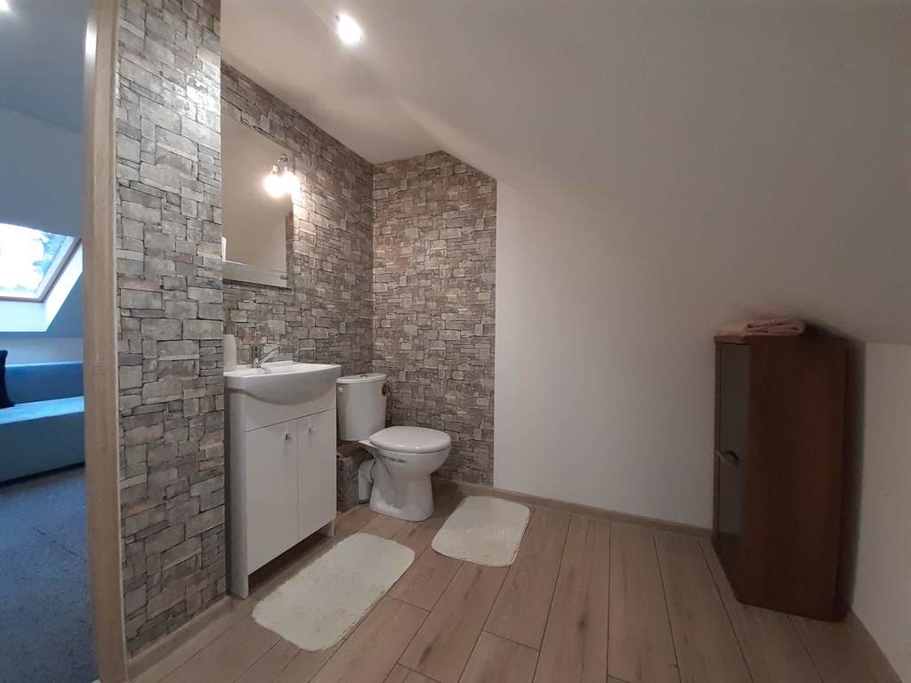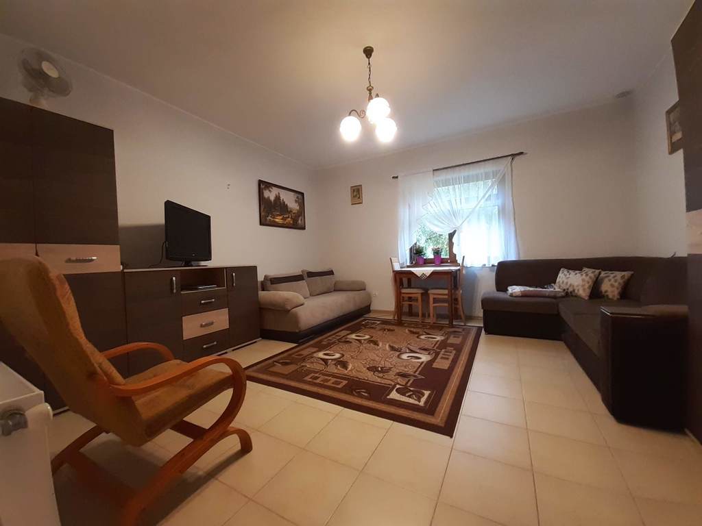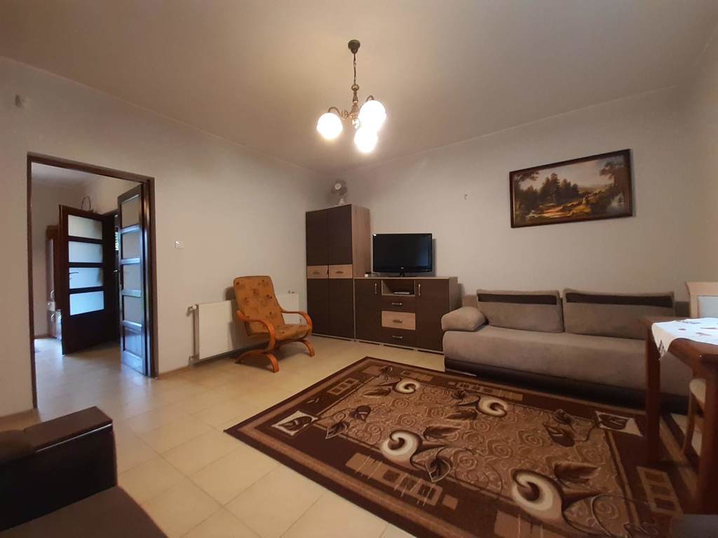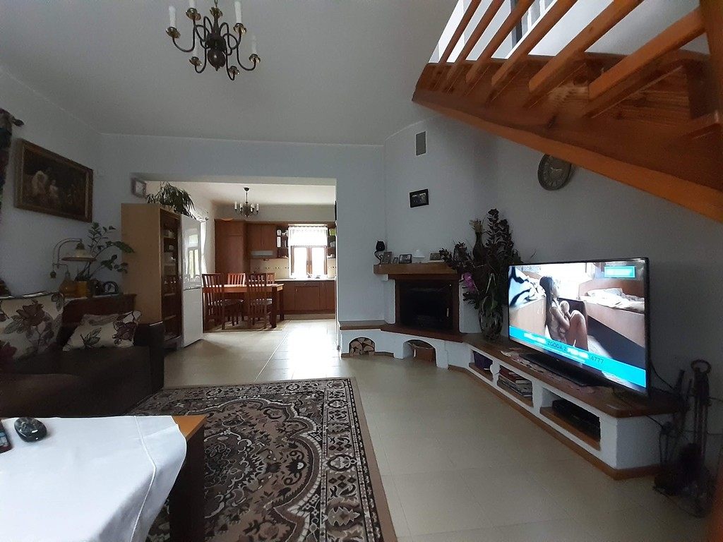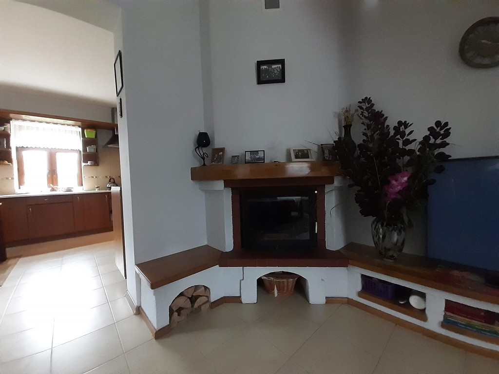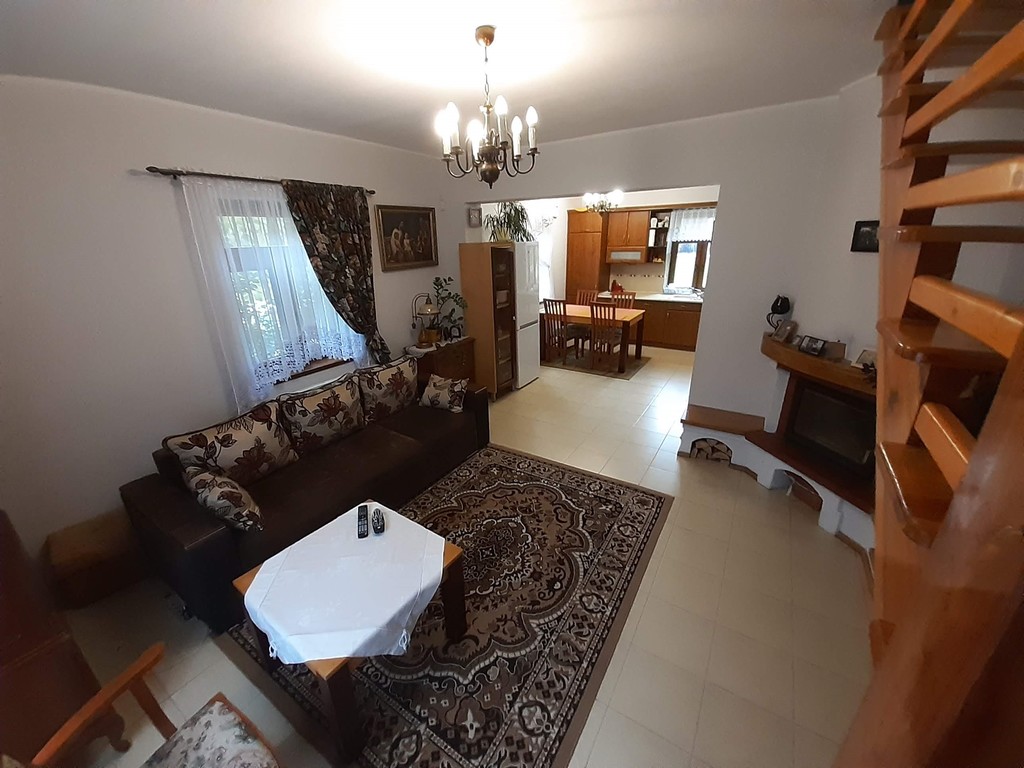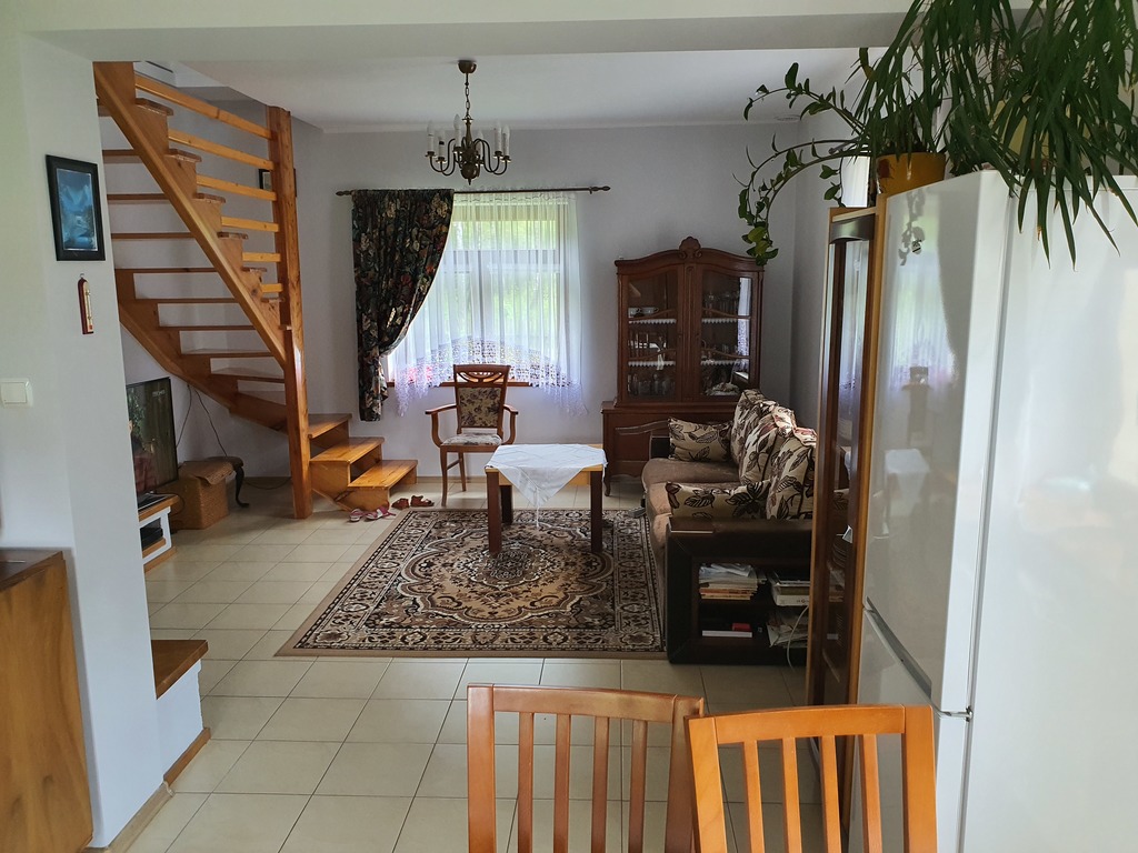 W salonie znajduje się klimatyczny kominek, z dużą ilością drewna . Kuchnia widna, z wyposażeniem (zmywarka, kuchenka, okap).