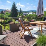 Spokojne sąsiedztwo, zadbane otoczenie, ogród, garaż, duży taras z widokiem na góry.
