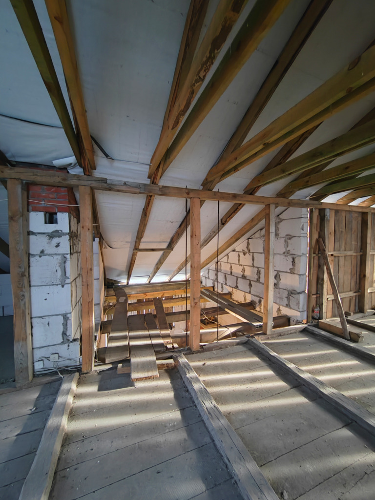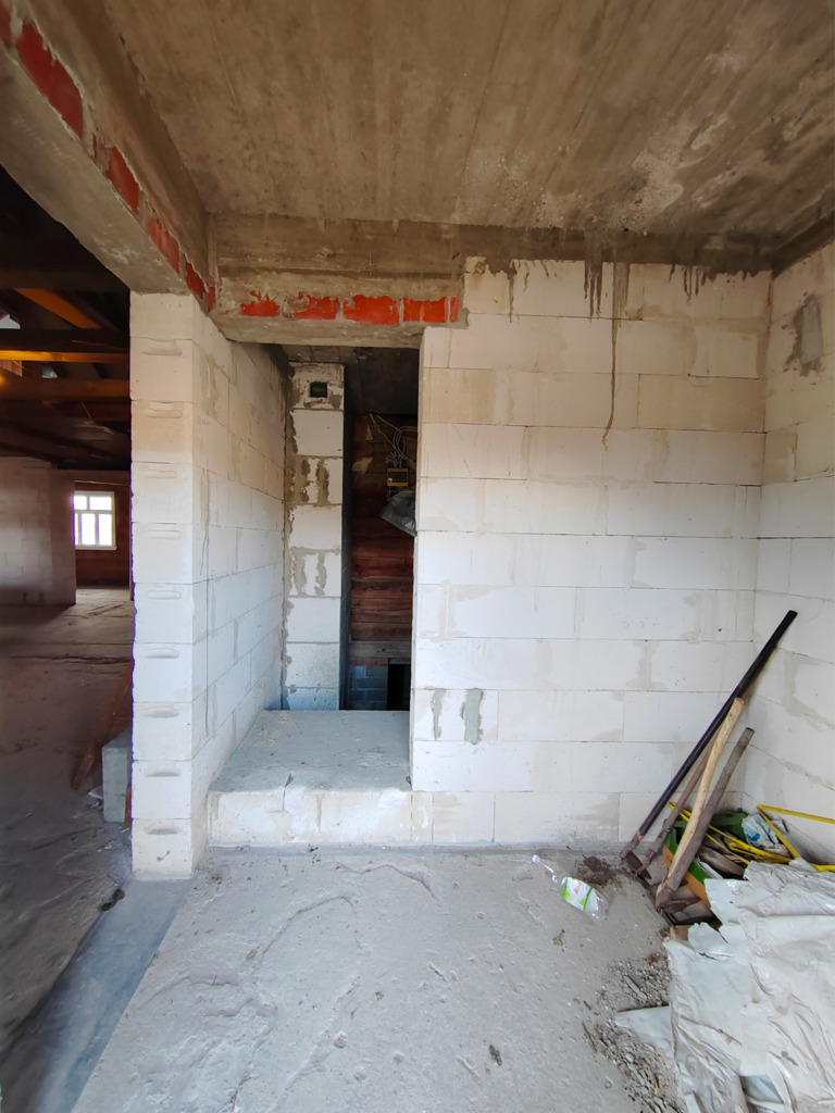 Dom jest w stanie surowym po rozbudowie z roku 2019, co daje możliwość stworzenia wymarzonego wnętrza według własnego gustu i potrzeb. Została stworzona nowa więźba i pokrycie dachu, dzięki czemu jest możliwość aranżacji poddasza.