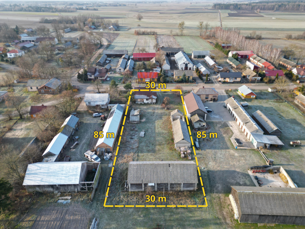 Nieruchomość tworzy działka nr 343 o powierzchni 2700z domem oraz budynkami gospodarczymi. Według MPZP działka przeznaczona jest pod zabudowę mieszkaniową oraz tereny rolne (MR).