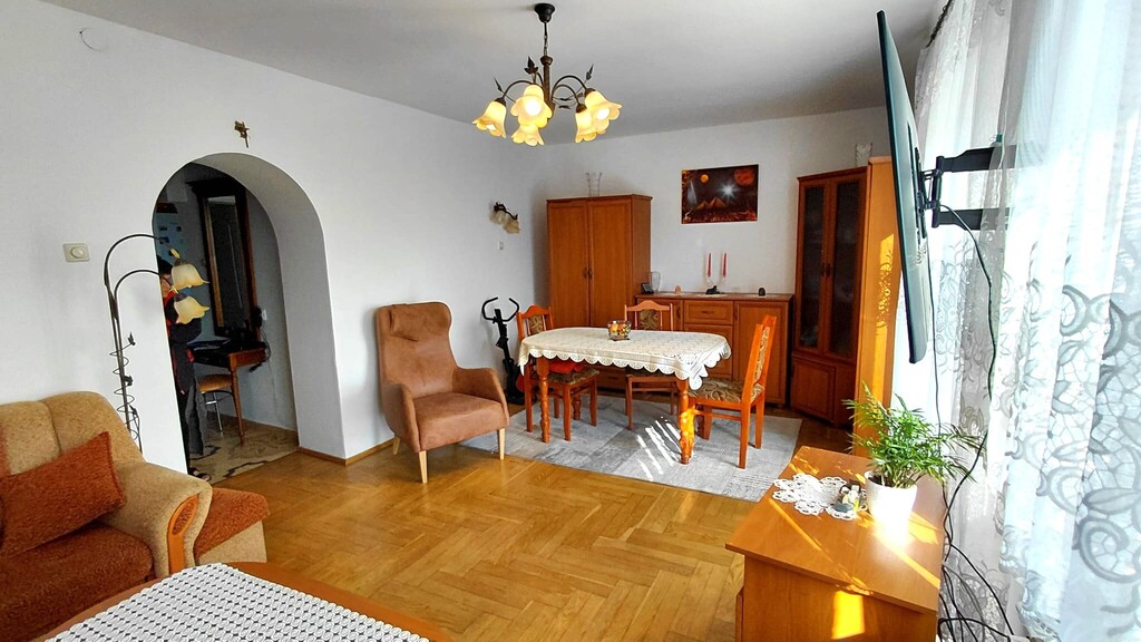 Na sprzedaż dom o powierzchni 71 m², z własnym ogrodem, trzema garażami za budynkiem oraz altaną. Nieruchomość posiada niezależne wejście, zapewniające pełną prywatność domownikom.