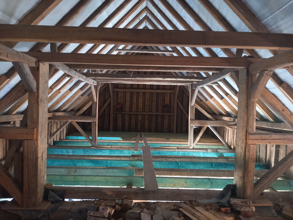 - drewnianej obecnie przygotowanej na część mieszkalną- pierwotnie stodoła