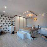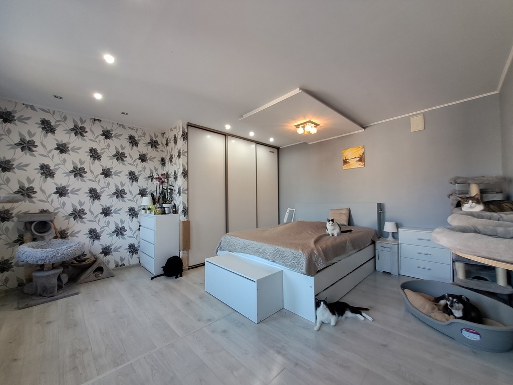 W pokojach na podłogach panele, na ścianach gładzie i sufity podwieszane.