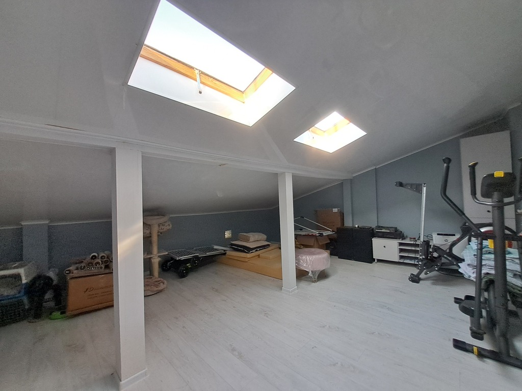 Na poddaszu mamy dwa widne pomieszczenia z oknami dachowymi.