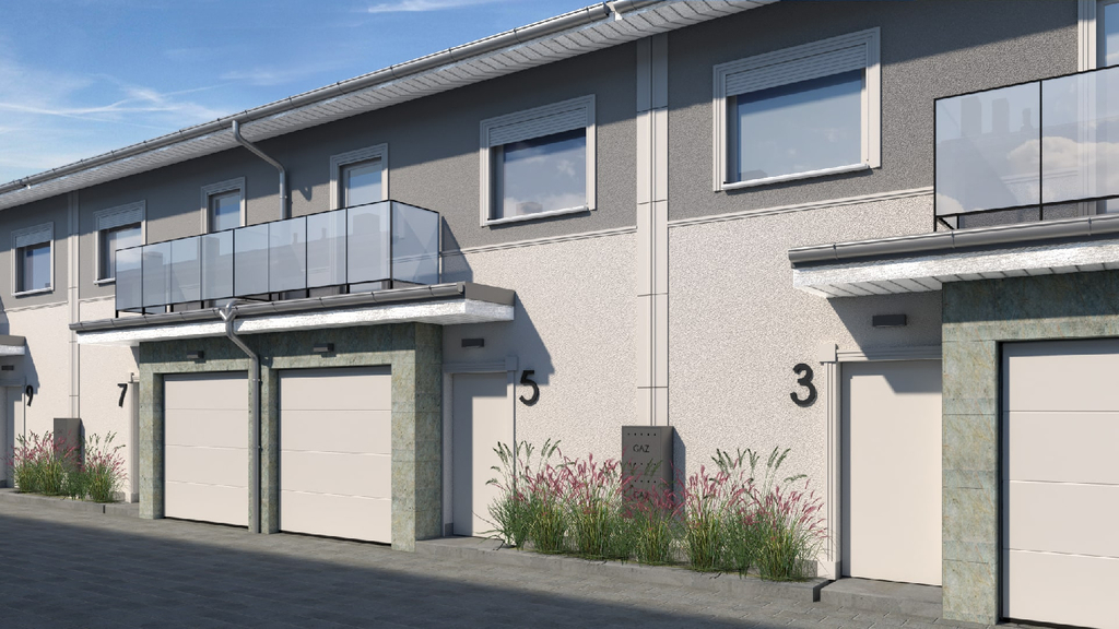 Każdy apartmaent posiada jednostanowskowy garaż z bramą segmentową oraz podjazd przed budynkiem.