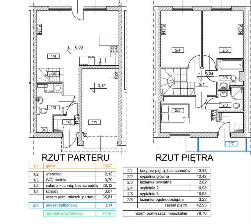 - salonu z aneksem kuchennym i wyjściem do ogródka (26,12 m2)