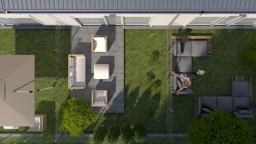 Dom znajduje się w zabudowie szeregowej wraz z pozostałymi 25 domami na ogrodzonym terenie zamkniętym.