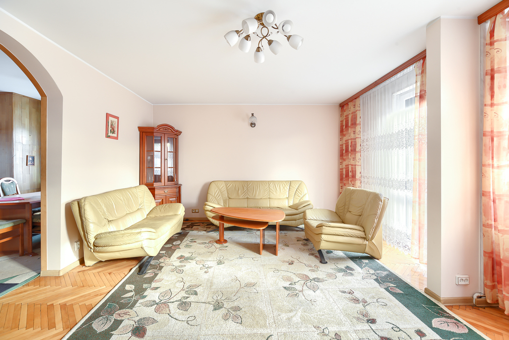 - Pierwsze piętro - oddzielna kuchnia z jadalnią, przestronny salon, toaleta, balkon