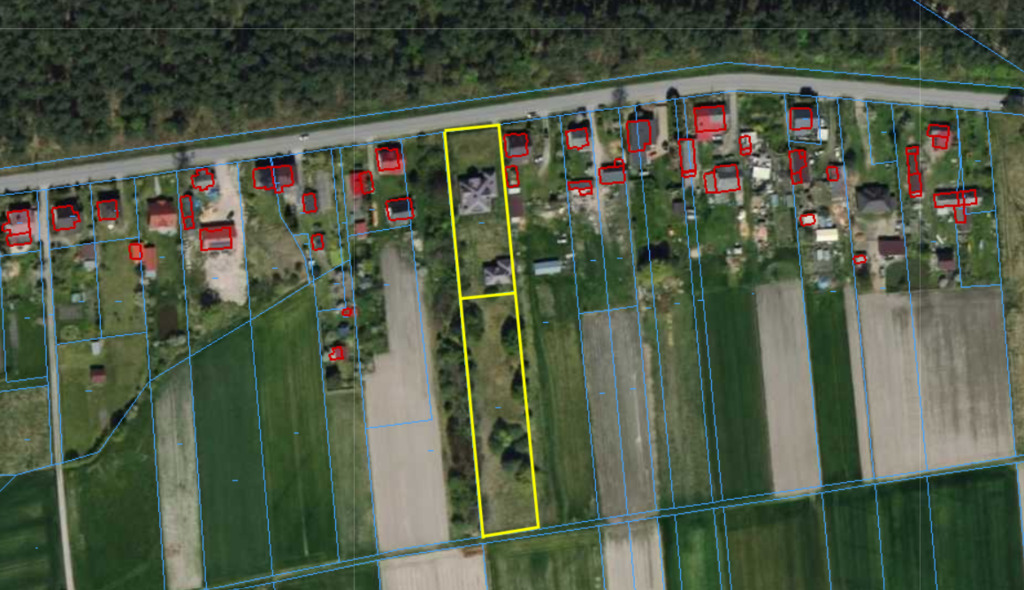 Bezpośrednio za pierwszą działką, znajduje się większa działka bez żadnych zabudowań, o powierzchni 3069m². Jest nie tylko większa od pierwszej, ale możliwy jest do niej osobny dojazd droga gminną, więc może stanowić świetną ewentualną inwestycję jako osobny grunt. W tej chwili ta działka ma status rolny ale jest to oczywiście kwestia formalności umożliwiających przekształcenie jej w budowlaną.
