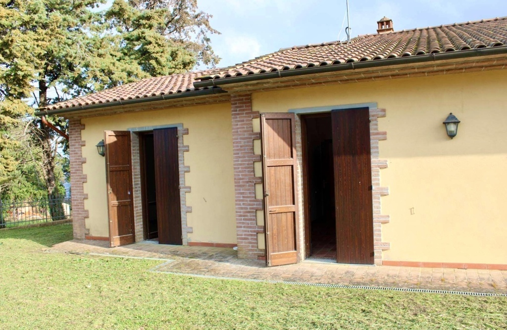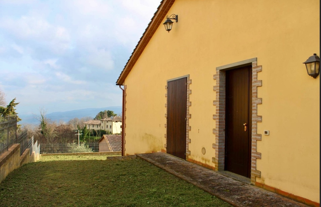 Nieruchomość otoczona jest zielenią, a z ogrodu rozciąga się panoramiczny widok na falujące wzgórza i średniowieczne wioski. To idealne miejsce na poranną kawę, wieczorne kolacje pod gołym niebem, czy relaks w cieniu drzew oliwnych.