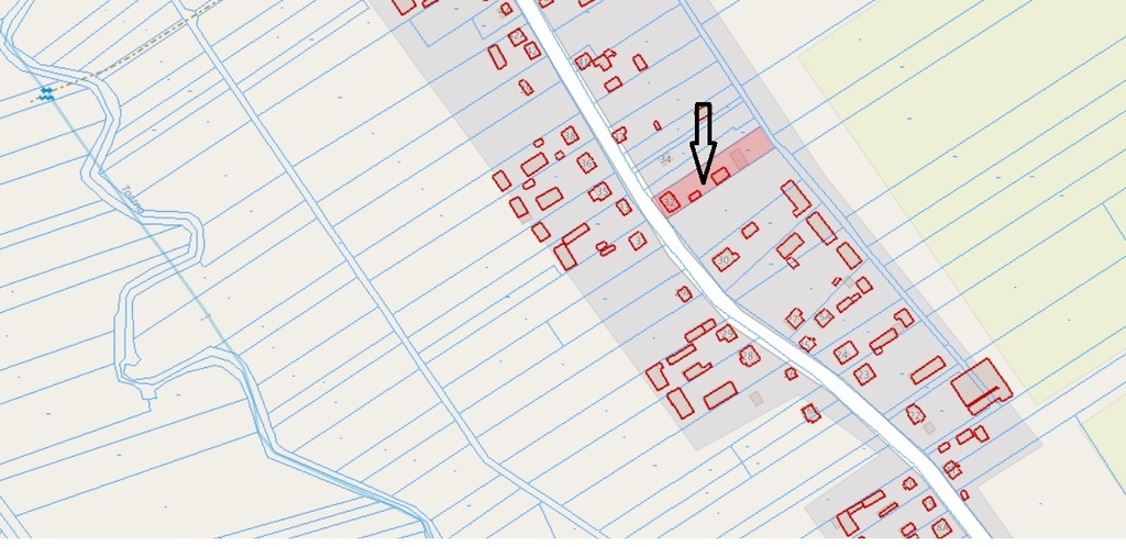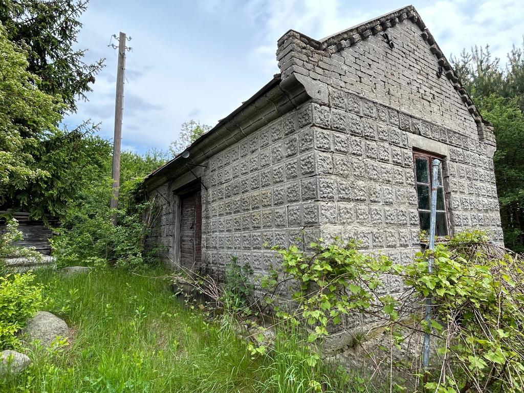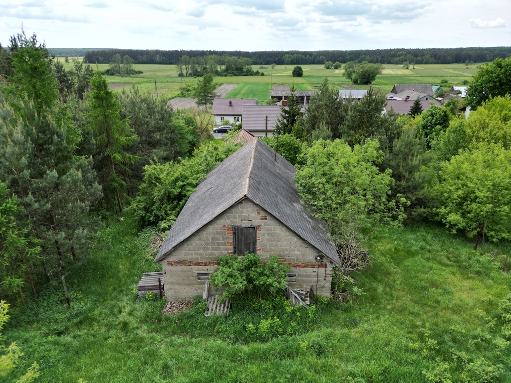 Dom położony jest na działce, która delikatnie się wznosi i dzięki temu oddziela część z domem od części zadrzewionej, na której są również 2 budynki gospodarcze. Są to murowane budynki wyposażone w instalację elektryczną. Pierwszy w bliskiej odległości od domu ma powierzchnię ok. 50m2, który posiada piwnicę na ok. 2/3 powierzchni budynku. Drugi budynek, w dalszej części działki to dawna obora o powierzchni ok. 100m2. Oba budynki są puste.