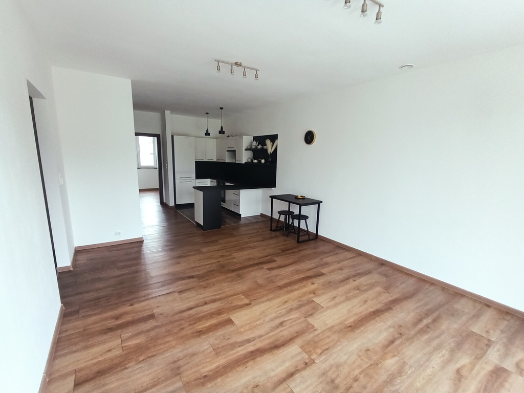 Kuchnia w zabudowie (lodówka, zmywarka, indukcja, piekarnik).