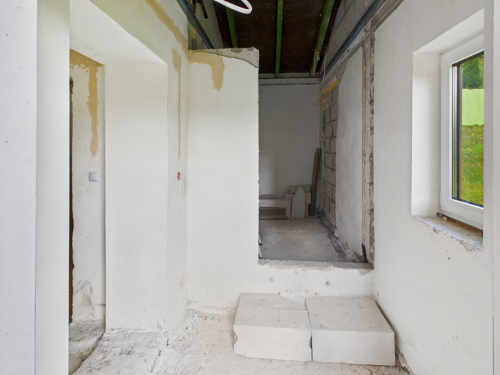 Stan wykończenia -zamknięty z nowymi oknami trzyszybowymi, bez instalacji c.o. i wod-kan .