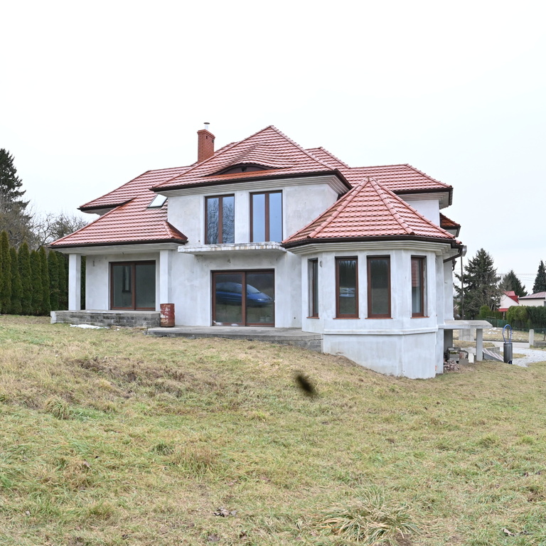 Reprezentacyjny dom o całkowitej powierzchni użytkowej 486 m² budowany dla "siebie" położony na dużej, ca. 20 arowej działce o wymiarach 45 x 43 m. Dojazd do działki jest z dwóch stron tj. od ulicy Leszka czarnego i Podgórze. Dom w stanie deweloperskim został oddany do użytkowania w ub.r. Budynek jest nowoczesny i energooszczędny . Ściany są ocieplone , dach pokryty dachówką , okna aluminiowe (4-szybowe) z roletami , wszystkie niezbędne media doprowadzone do budynku (woda, prąd, kanalizacja, gaz)