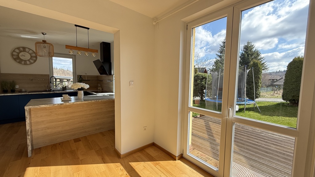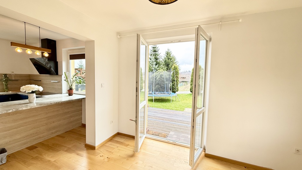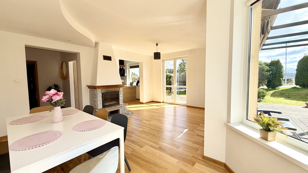 Dom nie wymagający nakładów. Rodzinny azyl w sercu gór – gotowy do zamieszkania od zaraz.Nieruchomość o powierzchni 203 m² (dom + garaż dwustanowiskowy + dodatkowa wiata) została zaprojektowana z myślą o wygodzie rodziny, która w nim zamieszka.
