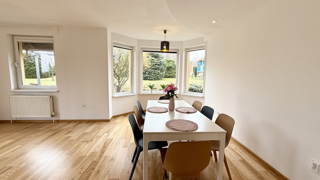 To miejsce, w którym można naprawdę odetchnąć – zadbany ogród, piękne widoki, sielski klimat a drugiej strony blisko do miasta i pełnej miejskiej infrastruktury, wyjątkowe miejsce do życia.
