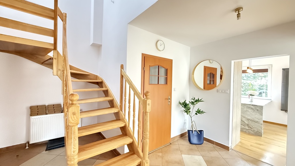 Dom nie jest umeblowany, ale ma praktycznie nową kuchnię, gotowe łazienki, został odmalowany i nie wymaga nakładów finansowych.Jeśli marzysz o życiu bez stresu, bez inwestycji w remonty- ten dom czeka właśnie na Ciebie i Twoją rodzinę. Do centrum Jeleniej Góry