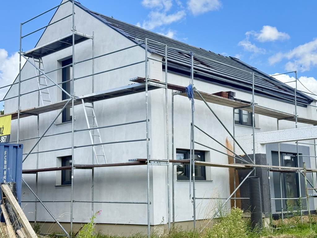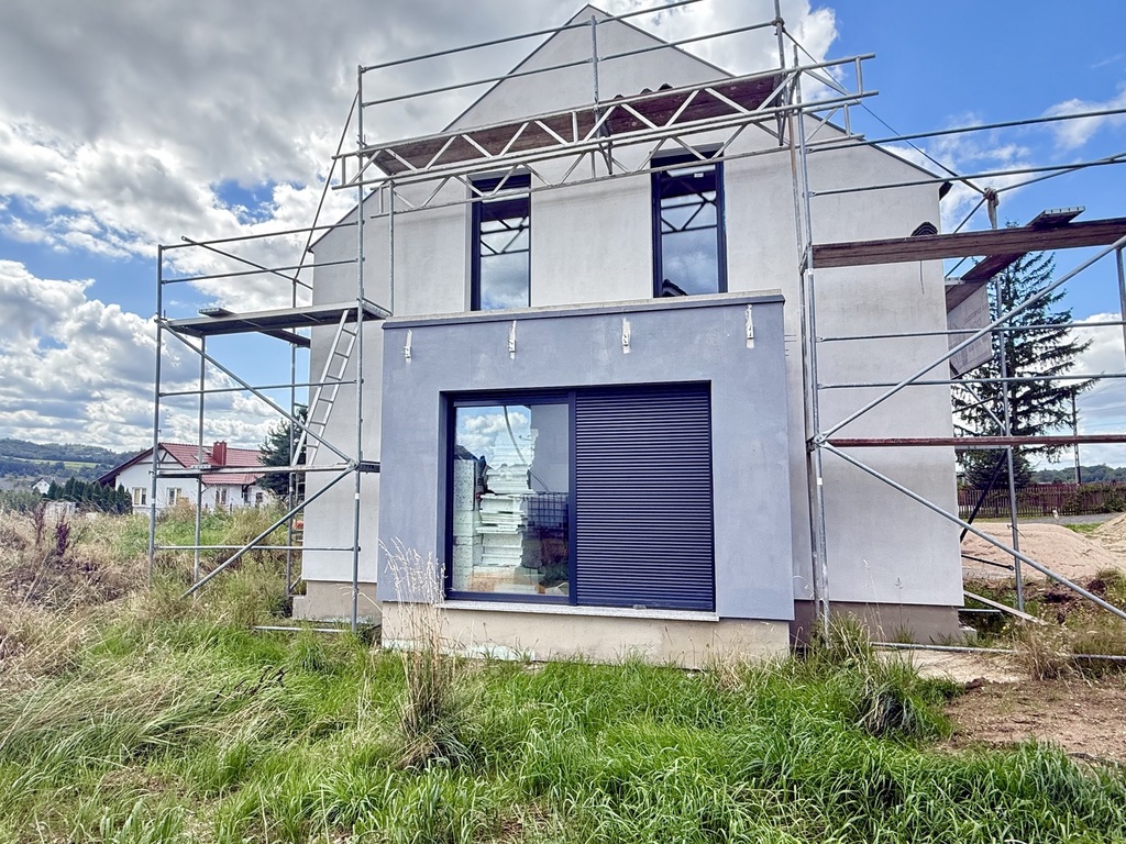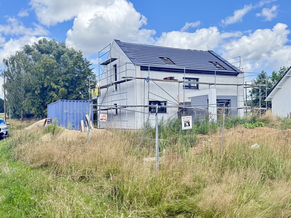 Dom jest w trakcie budowy, termin oddania pierwszy kwartał 2026. Budynek został wybudowany z bloczków betonu komórkowego, ocieplonym styropianem 20cm plus zewnętrzny tynk cienkowarstwowy. Wyposażony jest w okna PCV z roletami zewnętrznymi elektrycznymi góra i dół. Zaplanowano ogrzewanie podłogowe w całym budynku ( góra i dół). Budynek jest niepodpiwniczony.