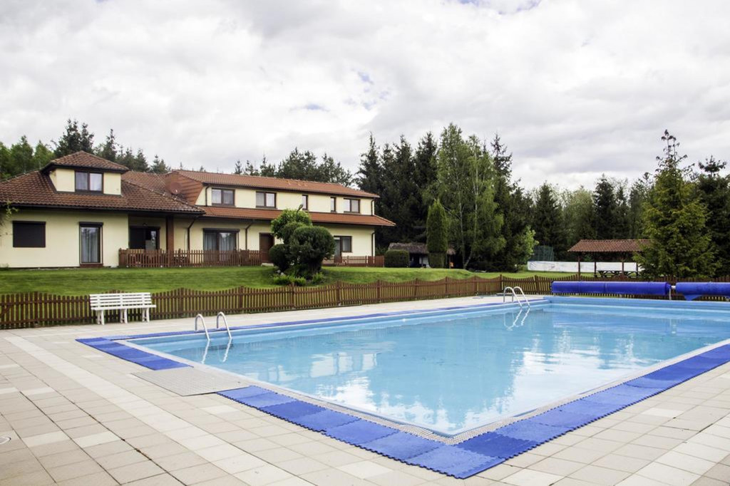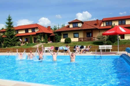 - odkryty basen pływacki z podgrzewana wodą do około 30 stopni C ( sezon letni )