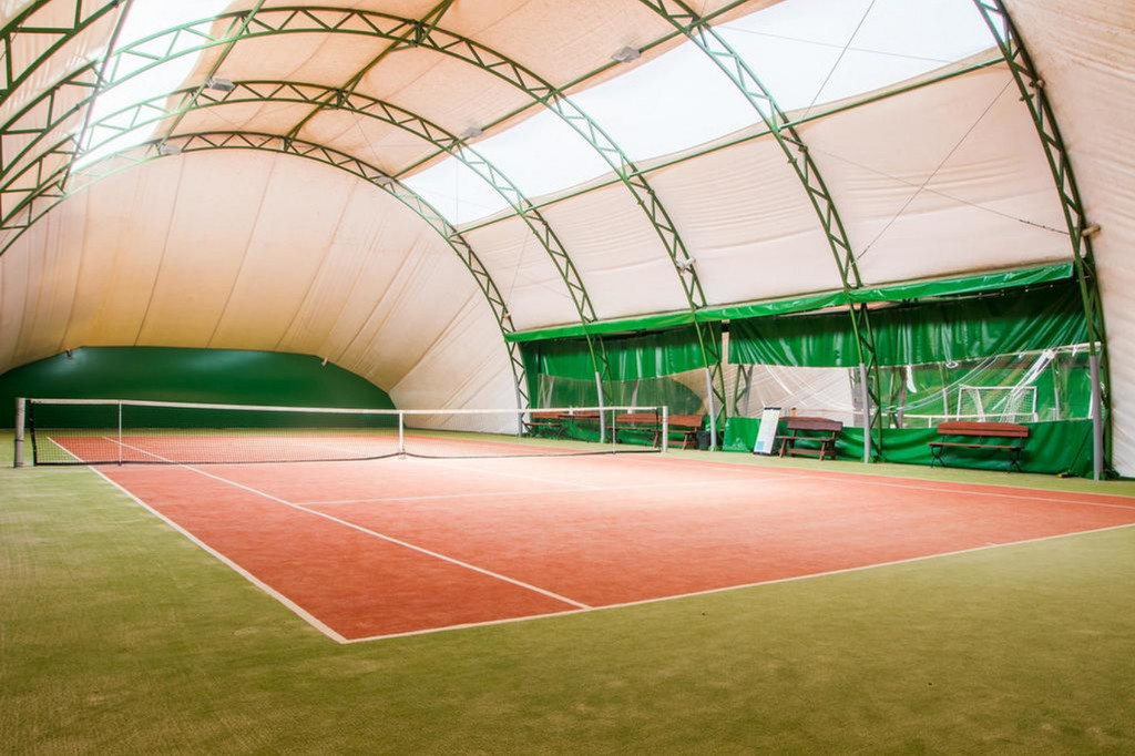 - profesjonalne dwie hale tenisowe z możliwością uprawiania innych dyscyplin sportowych przez cały rok ( sztuczna trawa )