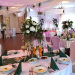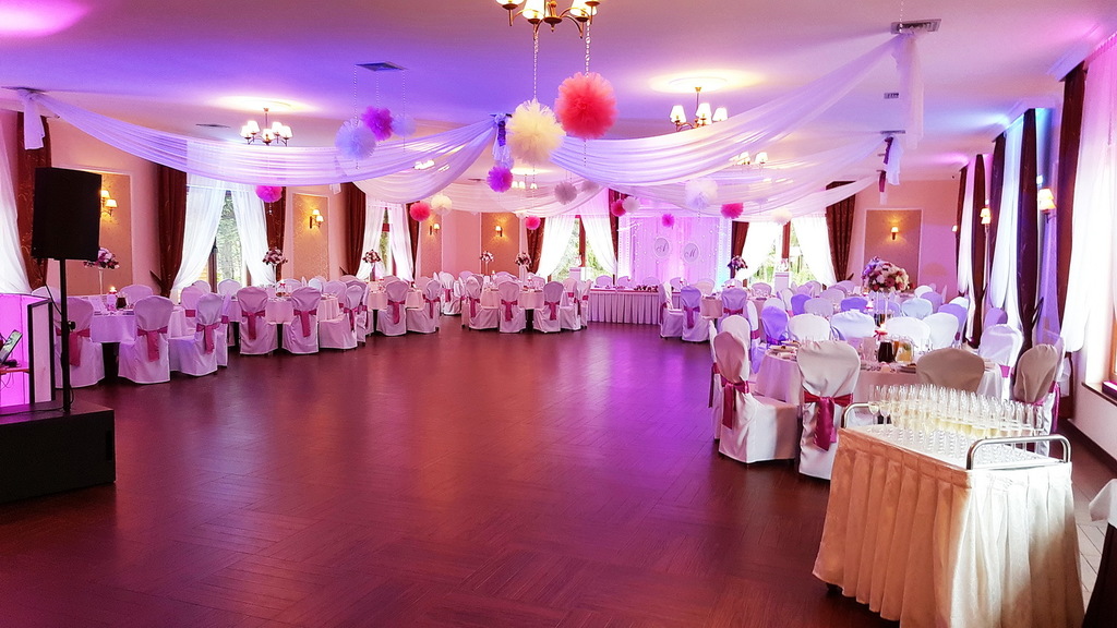 Dwie sale bankietowe - jedna utrzymana w stylu dworku polskiego dla 160 osób, druga w stylu rustrykalnym, kominkowa dla 80 osób, zachęcają Młode Pary do zorganizowania przyjęcia weselnego w tej przepięknej okolicy. sale bankietowe wyposażone w osobną kotłownię, a w niej nowoczesna technologia i podwójny system klimatyzacji, wentylacji, jonizację powietrza oraz ogrzewanie amerykańskiej firmy Lennox.