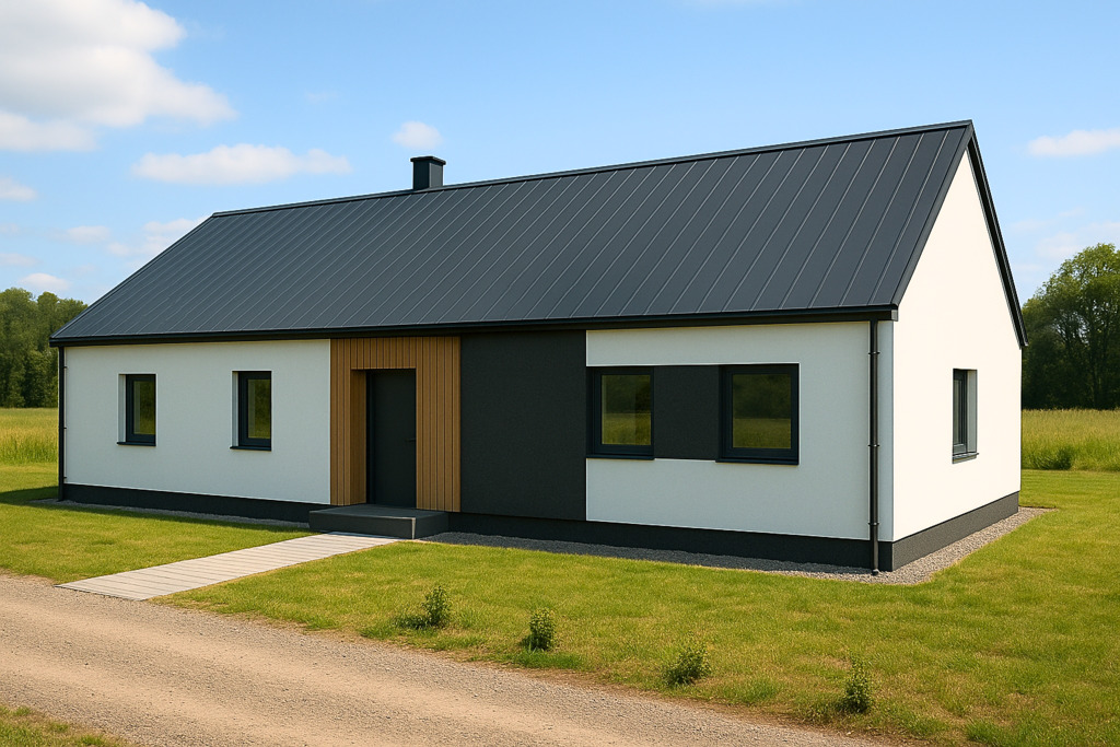 Dom parterowy, wolnostojący, z funkcjonalnym i komfortowym rozkładem pomieszczeń.
