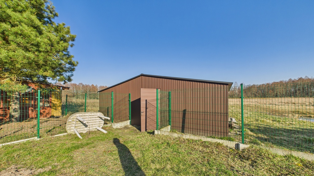 Na terenie działki zlokalizowana jest przydomowa oczyszczalnia ścieków oraz panele fotowoltaiczne o łącznej mocy ok. 40kW