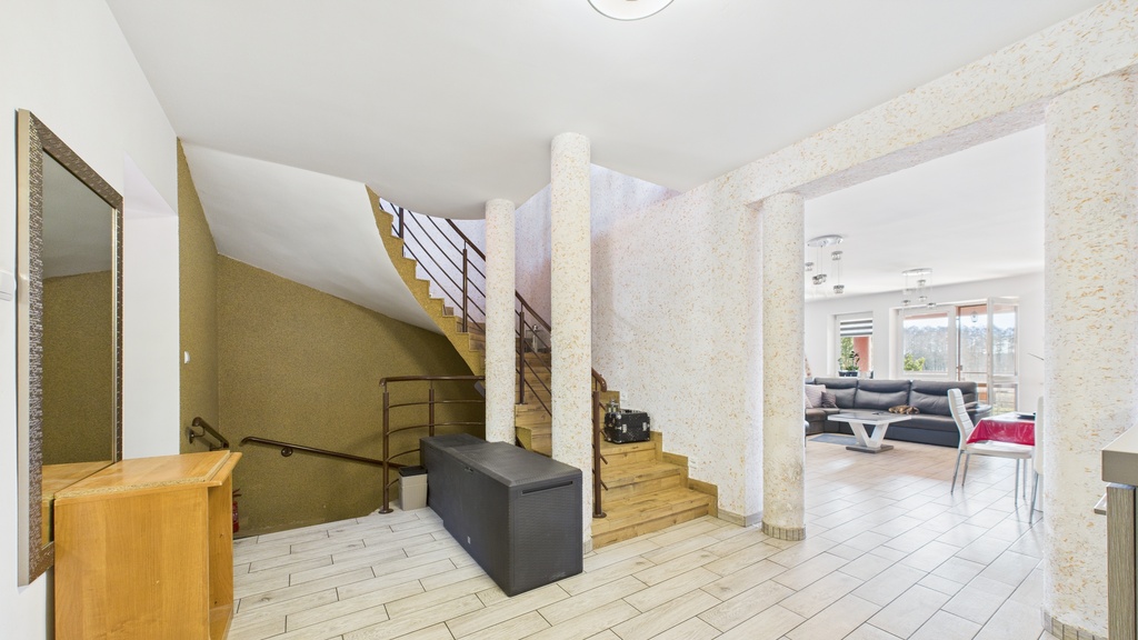 - hol z wiatrołapem i schodami na poddasze i do piwnicy