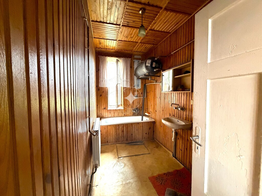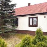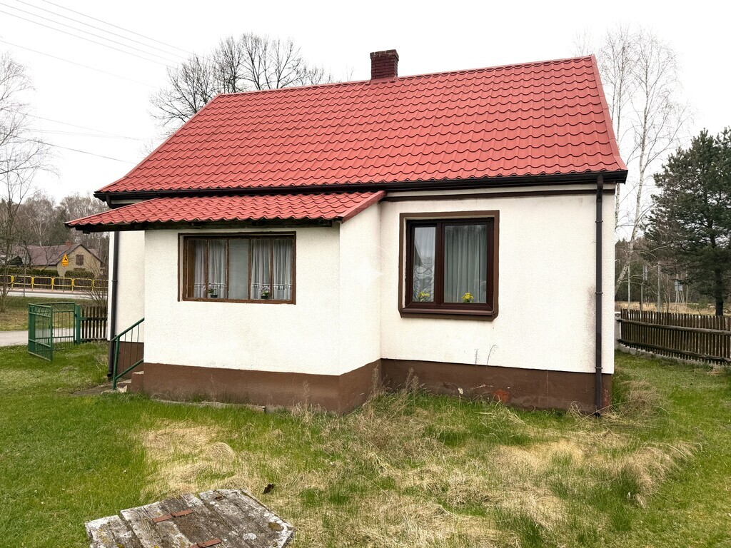 Materiał budowy – pustak szary. Dach pokryty blachą. Okna PCV.