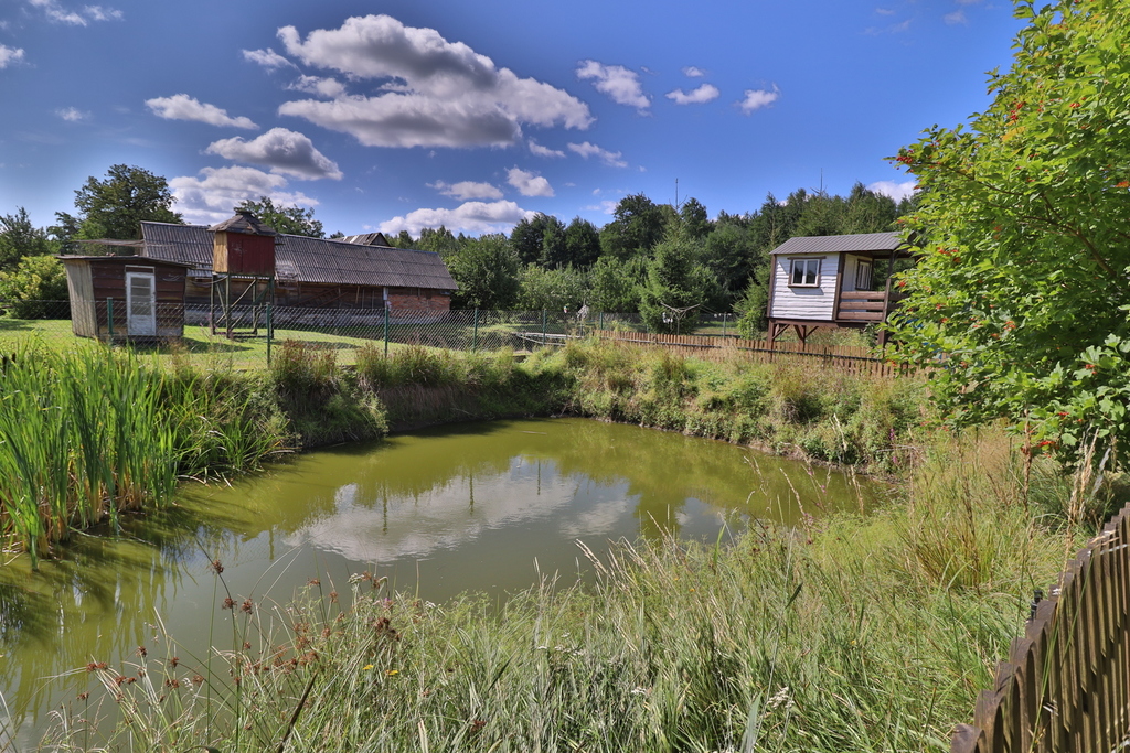 Zadaszony taras oraz piękny ogród ze stawem i dwoma starymi wierzbami zachęcają do relaksu na świeżym powietrzu. Na działce znajdują się także warzywnik, drzewa i krzewy owocowe oraz skalniaki z kwiatami.