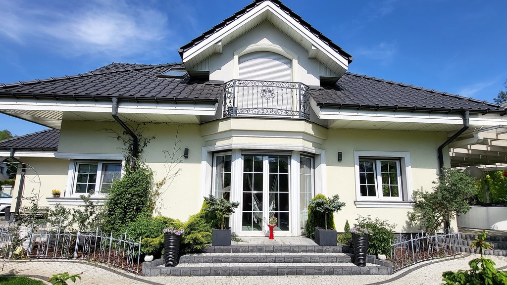 Ekonomiczny i funkcjonalny dom jednorodzinny składający się z dwóch kondygnacji o powierzchni 251m2, posadowiony na działce o powierzchni 1245m2 z pięknie zaaranżowanym ogrodem i przestronnym tarasem.