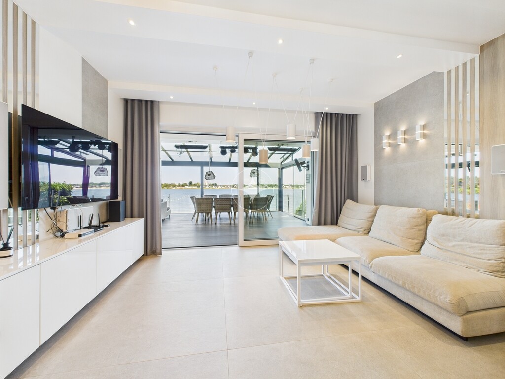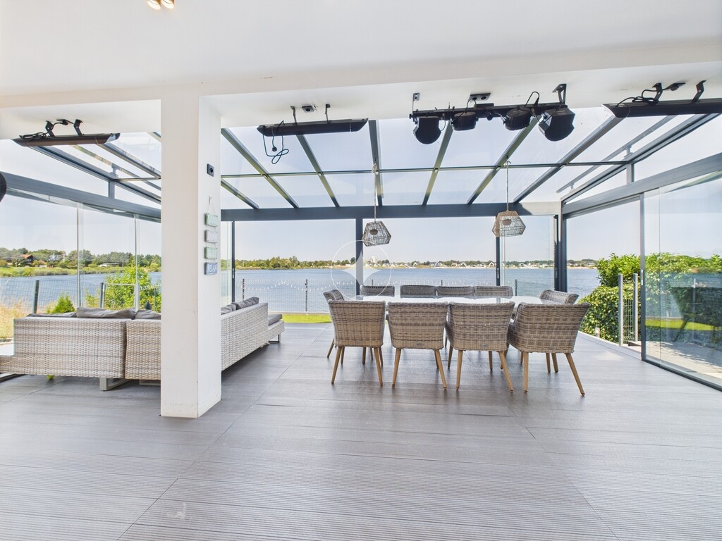 Dom jest w idealnym stanie, wykończony w wysokim standardzie, w pełni umeblowany i wyposażony, gotowy do zamieszkania. Posiada prywatną plaże oraz przystań na sprzęt wodny. Ogród zimowy wyposażony jest w elektryczne markizy, wysokiej jakości nagłośnienie zewnętrzne, oświetlenie oraz promienniki ciepła.